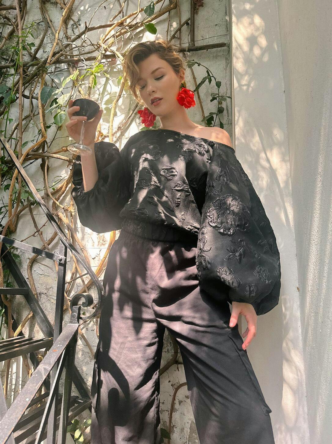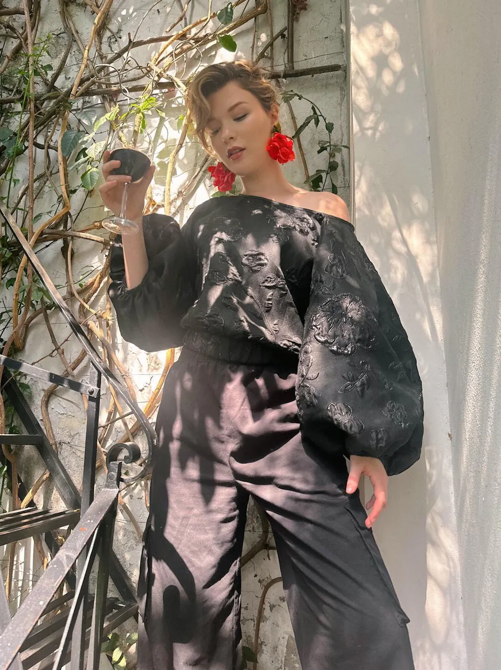 Talk about making a Statement! We turned our iconic Good Luck Dress into a Top and Just WOW! Featuring Dramatic Oversized Sleeves and Elastic Waistband. So Many Styling Options!